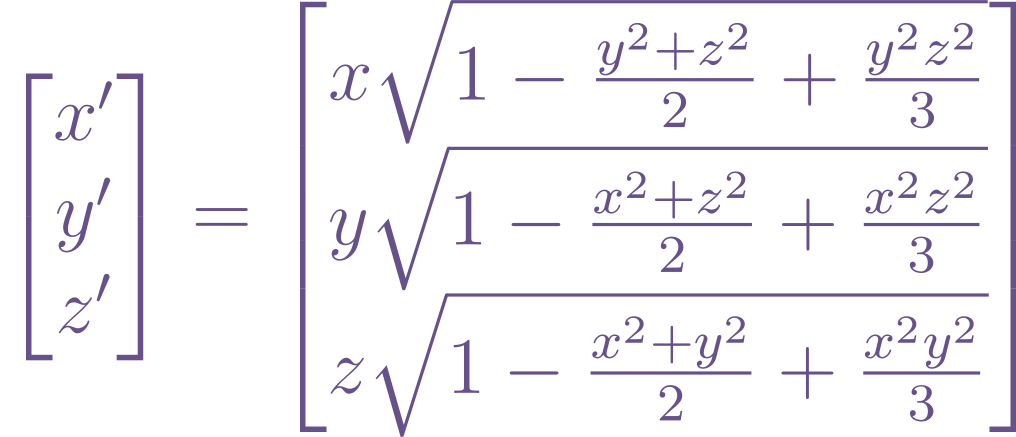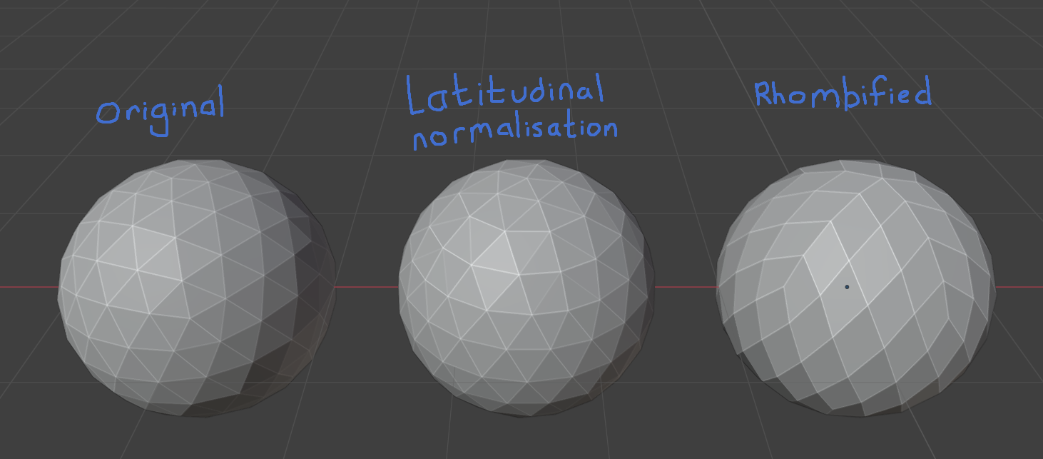 This is an improvement, but a fundamental aspect of this mapping is the 120 degree angle at the corners. We will always be trying to connect those 3 cube faces together, resulting in square chunks that have to distort to odd shapes.